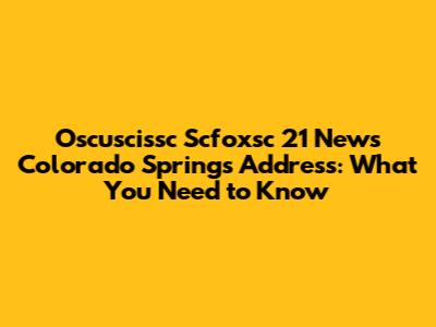 Breaking: Scfoxsc 21 News Colorado Springs Address